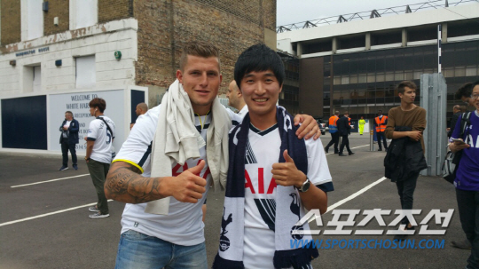 토트넘팬들은 동양인과 마주칠 때마다 'SON'을 연호하며 인사를 건냈다. 공식 매장에는 벌써부터 손흥민의 이름을 유니폼에 새기고 있는 현지팬들도 있었다. 한 한국인팬이 눈에 띄었다. 현지팬들이 끊이없이 사진을 찍자고 요청했기 때문. 세계일주중인 이형석씨(25)는 손흥민의 이름을 새긴 토트넘 유니폼을 입고 경기장으로 가고 있었다. 그는 "여행 도중 경기장 옆에 숙소를 구했다. 경기 티켓도 구매했는데 운좋게 손흥민이 입단했다"며 기뻐했다. 그는 "분데스리가에서의 활약을 보더라도 EPL에서 잘 적응할 것이다. 해리 케인과의 호흡을 기대한다"고 밝혔다.