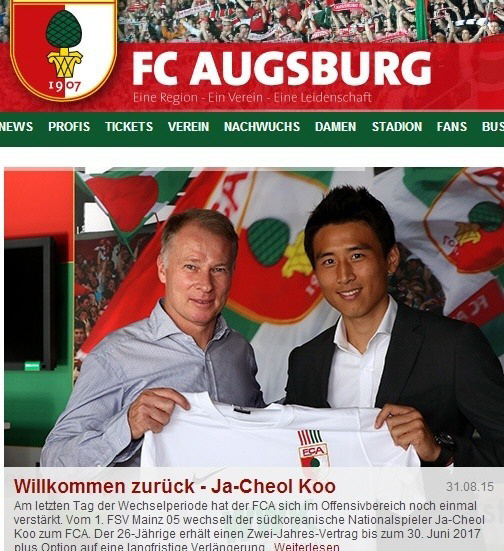 아우크스부르크는 1일(한국시각) 구단 공식 홈페이지를 통해 '구자철을 영입했다'고 공식발표했다. 계약 기간은 2017년 6월까지이며 계약 연장 옵션이 포함됐다. 독일 현지 언론은 이적료로 500만 유로(약 66억 원)를 추정하고 있다. 이는 아우크스부르크 구단 역대 최고 이적료이자 지난 2014년 1월 구자철이 볼프스부르크를 떠나 마인츠로 이적할 때 기록한 이적료와 동일한 액수다.