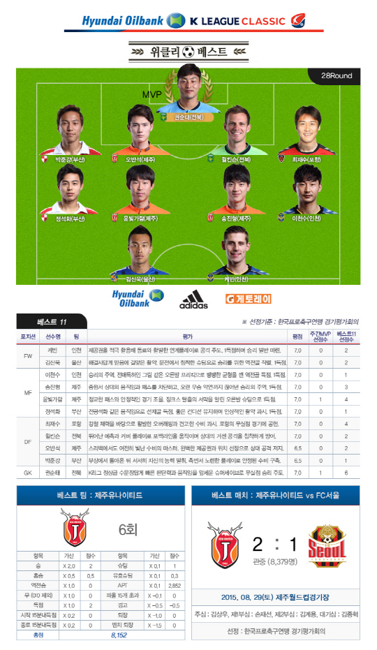 베스트 미드필더에는 이천수(인천) 송진형 윤빛가람(이상 제주) 정석화(부산)이 이름을 올렸다. 가장 인상적인 선수는 이천수였다. 장기인 날카로운 프리킥력을 과시하며 대전전에서 결승골을 이끌었다.