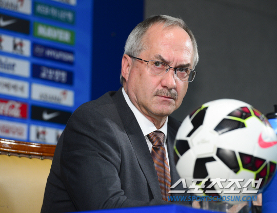 2018 러시아월드컵 아시아지역 2차예선 2연전에 나설 슈틸리케호의 명단이 발표됐다. 24일 오전 서울 신문로 축구협회 다목적회의실에서 슈틸리케 감독이 선수명단을 발표하고 있다. 이날 뽑힌 선수들은 9월 3일 화성종합경기타운에서 열리는 라오스전과 8일 레바논 원정에 출전한다. 정재근 기자 cjg@sportschosun.com/2015.08.24/