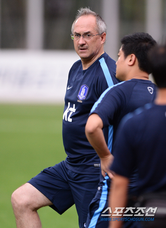 2018 러시아 월드컵 아시아지역 2차 예선 라오스와 레바논 전을 앞둔 축구대표팀 슈틸리케호가 1일 경기도 화성종합경기타운에서 훈련을 가졌다. 대표팀은 9월 3일 경기도 화성에서 라오스, 8일 레바논 베이루트에서 레바논과 아시아지역 2차 예선을 치른다. 훈련을 준비하고 있는 슈틸리케 감독. 화성=송정헌 기자 songs@sportschosun.com/2015.09.01