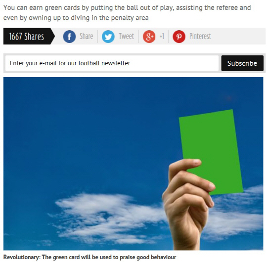 5일(한국시각) 영국 일간지 데일리미러는 이탈리아의 세리에B가 심판을 위해 그린카드 제도를 도입할 것이라고 전했다. 축구에는 옐로카드와 레드카드가 있다. 옐로카드는 경고의 뜻이고, 레드카드는 퇴장을 의미한다. 징벌적 의미다. 그린카드는 상이다. 반칙을 하거나 잘못했을때 나오는 카드가 아니라 올바른 행동을 했을때 주어지는 긍정의 의미다. 선수가 경기장 내에서 페어플레이 정신에 맞는 행동을 했을 때 꺼내진다.