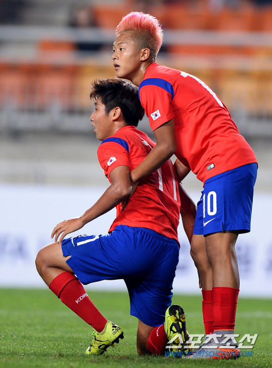 바르셀로나에서 함께 뛰어온 장결희와 이승우(오른쪽). 수원=송정헌 기자 songs@sportschosun.com/2015.09.02
