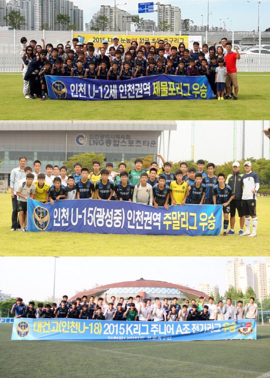 U-15(광성중)와 U-12는 인천 권역 우승으로 왕중왕전 진출을 확정지었으며, U-18(대건고)은 현재 후기리그 4위를 기록하고 있어 2위까지 진출할 수 있는 후반기 왕중왕전 참가에 가능성을 열어둔 상태다.
