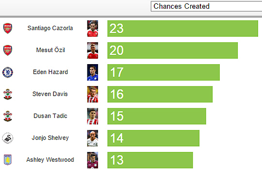 지루는 2013-14시즌의 16골(7위), 월콧은 2012-13시즌의 14골(11위)이 아스널에서의 커리어하이다. 올시즌 지루는 5경기(선발 3) 2골, 월콧은 4경기(선발 2) 1골을 기록해 아스널 득점의 60%를 기록중이다. 하지만 맨시티와 2위 레스터시티의 폭발적인 득점력(11골)에 눈길이 가는 것은 어쩔 수 없다.