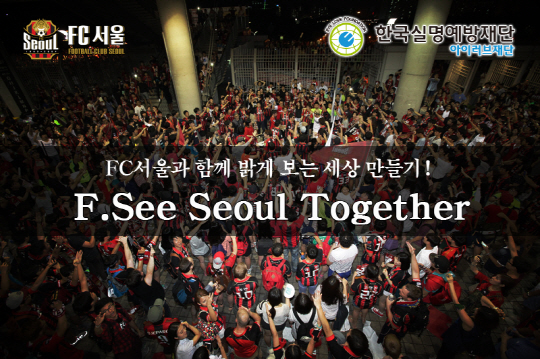 FC서울이 저소득 가정 어린이 눈 건강 증진을 위해 한국실명예방재단과 'F.See Seoul Together'사업을 진행한다. 눈은 살아가는 정보의 90% 이상을 얻는 중요한 신체기관으로 오랫동안 건강하게 유지하는 것이 중요하다. FC서울은 한국실명예방재단과 함께 'F.See Seoul Together'사업을 진행한다.