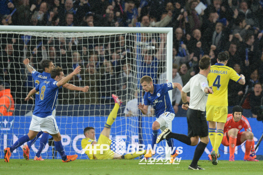 | 환호하는 레스터시티와 좌절하는 첼시 선수들 ⓒAFPBBNews = News1 |