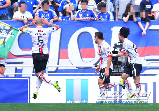 2015 프로축구 K리그 클래식 FC서울과 수원삼성의 슈퍼매치 3차전이 19일 수원월드컵 경기장에서 열렸다. FC서울의 아드리아노가 팀의 두번째 골을 성공시키고 환호하고 있다. 수원=최문영 기자 deer@sportschosun.com /2015.09.19/