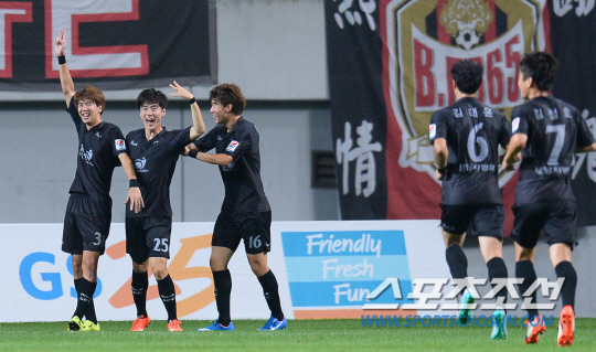 2015 프로축구 K리그 클래식 32라운드 FC서울과 성남FC의 경기가 23일 서울월드컵 경기장에서 열렸다. 성남FC의 박용지가 팀의 첫번째 골을 성공시키고 환호하고 있다. 상암=최문영 기자 deer@sportschosun.com /2015.09.23/