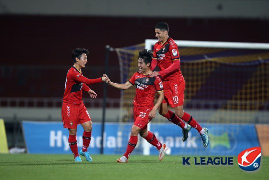 대구는 7일 대구월드컵경기장에서 벌어진 2015년 현대오일뱅크 K리그 챌린지 안산 경찰청과의 37라운드 경기서 전반 37분 조나탄의 결승골을 앞세워 1대0으로 승리했다. 승점 61(17승10무7패)을 확보한 대구는 이날 경기를 갖지 않은 2위 상주(승점 55)와의 격차를 6점으로 벌렸다. 이날 2위 도약을 노렸던 수원FC는 강원FC와의 경기에서 1대1로 비기며 3위 제자리 걸음을 했다. 3위 자리를 노렸던 서울 이랜드도 고양FC와 1대1로 승부를 가리지 못했고, 경남FC는 탈꼴찌를 바라던 충주 험멜을 2대0으로 누르고 찬물을 끼얹었다. 최만식 기자 cms@sportschosun.com