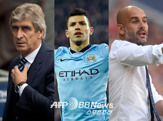 | 페예그리니 감독, 아게로, 과르디올라 감독(왼쪽부터). ⓒAFPBBNews = News1 |
