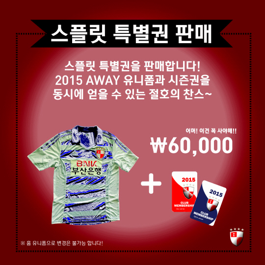 이번 스플릿 특별권을 구매하는 축구팬에게는 남은 2경기를 모두 볼 수 있는 시즌권과 부산 아이파크의 2015년 어웨이 유니폼이 기념품으로 증정한다.
