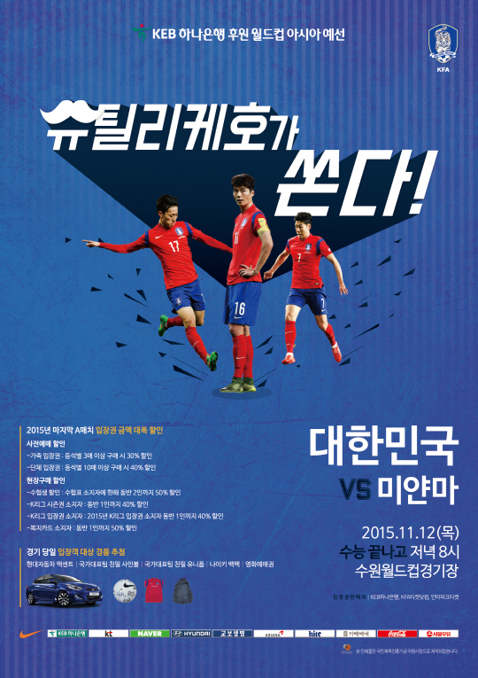 슈틸리케호의 2018년 러시아월드컵 아시아지역 2차예선 미얀마전(11월 12일 오후 8시·수원)의 입장권 판매가 28일부터 시작됐다.