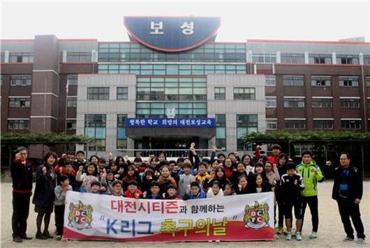 대전 시티즌이 29일 'K리그 축구의 날'을 맞아 보성초등학교를 방문해 학생들과 즐거운 시간을 보냈다.