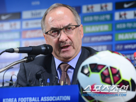 2일 오전 서울 신문로 축구회관에서 월드컵대표팀과 올림픽 대표팀 명단이 발표됐다. 슈틸리케 감독이 월드컵 대표팀 명단을 발표하고 있다. 슈틸리케 감독이 이끄는 월드컵대표팀은 12일 수원월드컵경기장에서 미얀마와 2016 러시아 월드컵 아시아지역 2차 예선을 치른 후 17일 라오스와의 원정경기에 나선다. 신태용 감독이 이끄는 올림픽 대표팀은 11일부터 열리는 중국 4개국 친선대회에 참가한다. 정재근 기자 cjg@sportschosun.com