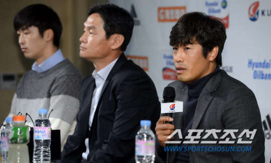 FC서울과 수원 삼성이 올시즌 4번째 '슈퍼매치'를 앞두고 5일 서울 신문로 축구회관에서 미디어데이를 가졌다. 기자회견에 참석한 서울 최용수 감독이 질문에 답하고 있다. 오는 7일 서울월드컵경기장에서 예정된 서울과 삼성의 올해 4번째 슈퍼매치는 K리그 클래식 2015 36라운드로 펼쳐진다. 올해 두 팀은 3차례 맞붙어 1승 1무 1패를 기록했고 통산전적에선 수원이 32승17무26패로 조금 앞서있다. 한편 올 시즌을 끝으로 현역생활 은퇴를 선언한 서울의 주장 차두리는 이날 경기에서 현역 은퇴식을 가질 예정이다. 허상욱 기자 wook@sportschosun.com