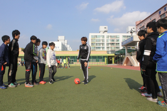 2시간 동안 진행된 이날 축구 클리닉은 조영철, 유준수가 참가했다. 선수들은 클리닉에 참가한 6학년 50여명의 학생들을 대상으로 축구 기본기 수업과 미니 축구 게임, 신체활동프로그램을 실시했다. 선수들은 클리닉 이후에는 체육관으로 이동해 6학년 전 학생들을 만나 사진촬영과 사인회를 하며 즐거운 시간을 가졌다. 축구클리닉에 참가한 유준수는 "항상 이런 프로그램에 찾가할때마다 보람됨을 느낀다. 어린 학생들이 잠깐의 만남이지만 이를 계기로 성장하는데 조금이나마 도움이 되었으면 한다"고 소감을 전했다.