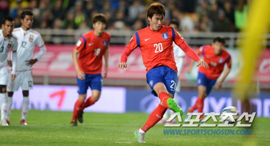 슈틸리케 감독이 이끄는 축구대표팀이 12일 수원월드컵경기장에서 미얀마와 2018 러시아월드컵 아시아지역 2차예선 경기를 가졌다. 전반 장현수가 페널티킥을 실축하고 있다. 수원=허상욱 기자 wook@sportschosun.com/2015.11.12/