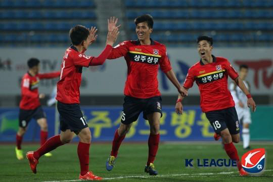 상주가 안산을 제압하며 선두로 뛰어올랐다.
