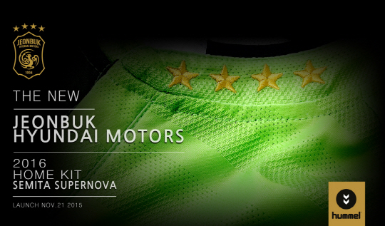 전북은 21일 성남과의 K리그 클래식 37라운드 경기에서 새 유니폼을 선보인다. 이번 유니폼의 주제는 '초신성의 길(The semita a supernova)'이다. 전북은 4번째 우승과 더불어 명문 구단으로 도약하기 위한 미래지행적 의지를 담아냈다고 알렸다.