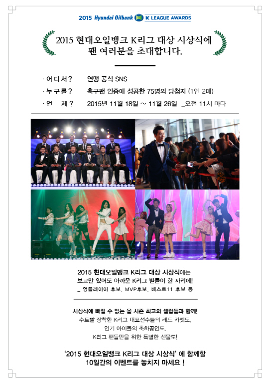 2015년 현대오일뱅크 K리그 대상 시상식에 K리그를 사랑하는 팬들을 초청한다.