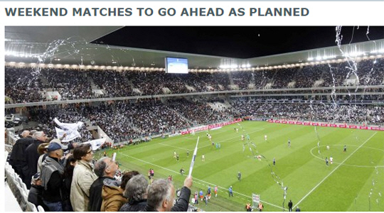 하지만 프랑스 체육부의 결정에 따라 이번 주말부터 리그 1위팀 파리생제르맹(PSG)과 로리앙의 맞대결을 비롯한 14라운드 경기는 정상적으로 진행된다.