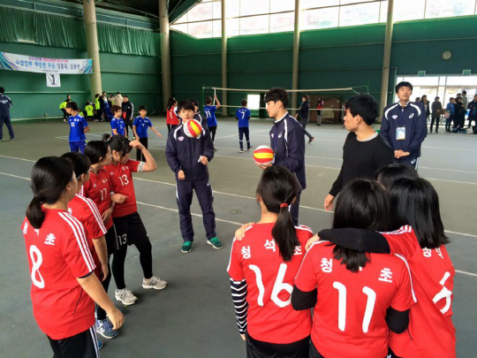 16일 교육부와 대한체육회가 주최한 2015년 전국학교스포츠클럽배구대회가 열린 강원도 인제다목적구장. "어이~파이팅." 오전 8시30분 체육관에 들어서자 중·고교 클럽 여자 배구 선수들이 경기 준비를 위해 몸을 풀고 있었다. 환한 웃음과 즐거운 표정이 가득했다. 진학을 위해 승부에 목매야 하는 엘리트체육이 아닌 클럽체육이기 때문에 연출될 수 있는 풍경이었다.