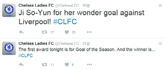 지소연은 이날 살인적인 일정으로 인해 '웸블리' 시상식에 참석하지 못했다. 전날 유럽챔피언스리그 16강 2차전 볼프스부르크 원정(0대2패)을 마치고 돌아온 지소연을 향한 러브콜이 쏟아졌다. 지난 시즌, 잉글랜드 프로축구선수협회(PFA) 올해의 여자선수상, WSL 선수들이 뽑은 올해의 선수상을 잇달아 수상했던 지소연은 올시즌 최고의 활약으로 첼시의 사상 첫 우승 및 '더블'을 이끌었다. 10골10도움으로 팀내 최다골, 팀내 최다공격포인트를 기록했고, FA컵 결승과 리그 최종전 등 우승을 결정짓는 경기에서 모두 결승골을 터뜨렸다. 열심히 뛴 그녀에게 상복은 끊이지 않았다. 아시안풋볼어워드와 첼시 레이디스의 자체 시상식을 겸한 시즌 종료 파티가 시간이 겹쳤다.