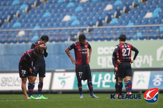 대전이 결국 한 시즌만에 K리그 챌린지로 추락했다. 대전은 21일 인천과의 경기에서 0대2로 패했다. 승점 19점에 머문 대전은 11위 부산(승점 25)과의 승점차를 좁히지 못하며 남은 1경기 결과에 상관없이 최하위를 확정지었다. 올 시즌 K리그 클래식은 최하위가 자동 강등하고, 11위가 챌린지 플레이오프 승자와 승강 플레이오프를 펼친다.