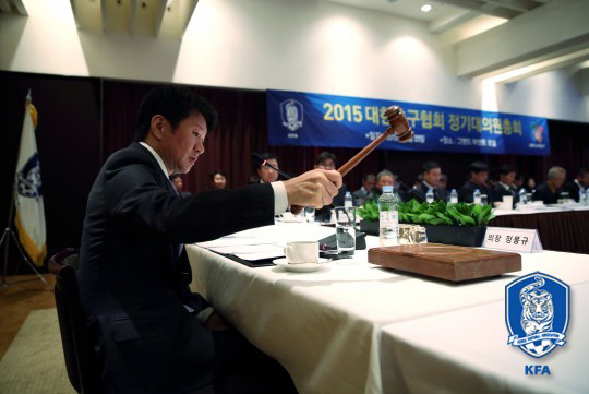 대한축구협회가 24일 서울 신문로 축구회관에서 임시 대의원총회를 열고, 전국생활축구연합회와 조직 통합을 추진하기로 결의했다.