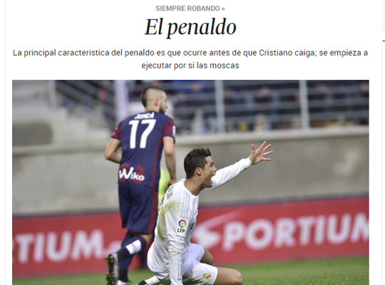 매체는 호날두의 헐리우드 액션을 '페날두'라고 지칭하며, 이 단어를 기사 전체에서 무려 19번이나 '페날두'라는 단어를 사용했다. 이들은 "호날두는 파울이 불리지 않자 혼란스러워하며 호들갑을 떨었다. 그는 심판에게 '난 지금 페날두를 썼다'라고 말하는 듯 했다"라고 묘사했다.