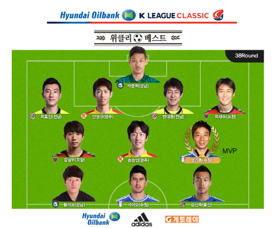 베스트 수비수에는 최재수(포항) 방대종(전남) 안영규(광주) 최효진(전남)이 포함됐다. 최고의 수문장에는 물오른 선방 능력을 보여준 박준혁(광주)이 선정됐다.