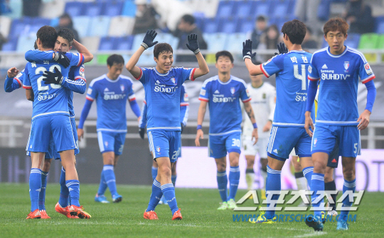 2015 프로축구 K리그 클래식 수원삼성과 전북현대의 경기가 29일 수원월드컵 경기장에서 열렸다. 수원 선수들이 전북을 상대로 2대1 승리를 확정짓고 환호하고 있다. 수원=최문영 기자 deer@sportschosun.com /2015.11.29/