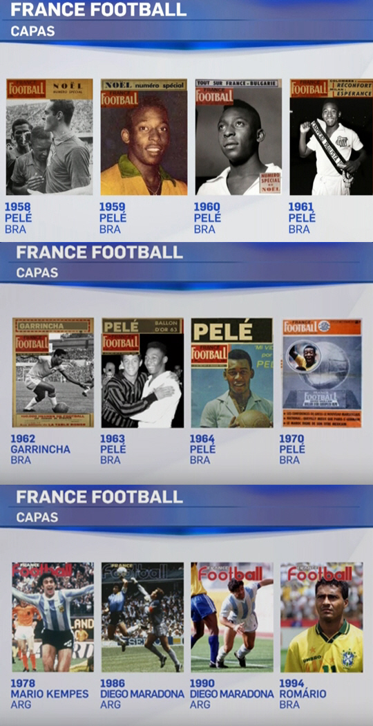 이에 따르면 펠레는 무려 7회 수상으로 메시를 능가하게 된다. 펠레는 1958년부터 1961년까지 4회 연속 수상한 뒤 1963-64년, 그리고 1970년 발롱도르를 수상한다는 것. 마찬가지로 마라도나 역시 1986년과 1990년 발롱도르를 받아 총 2회 수상자가 된다. 이들 외에 발롱도르를 받았어야할 남미 선수는 가린샤(1962)와 마리오 켐페스(1978), 호마리우(1994)가 꼽혔다.