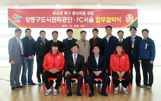 FC서울이 4일 강동구 유소년스포츠센터에서 FC서울 장기주 대표이사와 강동구도시관리공단 이계중 이사장이 참석한 가운데 유소년 축구 활성화 및 저변확대를 위한 상호 협력 MOU를 체결했다.