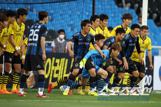 인천축구전용경기장/ K리그 클래식/ 인천유나이티드 vs 전남드래곤즈/ 인천 간접 프리킥/ 전남 김병지/ 사진 이완복