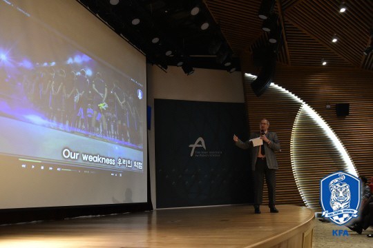 아시안컵에서의 장단점도 모두 이야기했다. 장점으로 규율 조직력 투지를 꼽았다. 단점으로는 문제점 인식 부족 당황하는 플레이 침착성과 상황판단 부족을 끄집어냈다. 전체적으로 경기력이 떨어지는 부분이었다.
