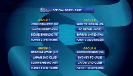 수원의 G조에는 호주리그 우승팀 멜버른, 일왕배 우승팀, PO4(태국, 말레이시아, 중국) 승자가 포진했다. PO4에는 상하이 상강이 유력하다. 포항이 PO를 통과하면 맞닥뜨릴 H조에는 중국 챔피언이자 올해 ACL을 제패한 광저우 헝다를 필두로 호주 리그 2위 시드니, J리그 1팀과 한 조에 속한다. 조 1, 2위가 16강에 오르지만 광저우의 높은 벽을 넘기는 쉽지 않아 보인다.