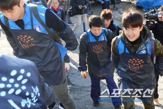 16일 서울 노원구 중계동에 위치한 104마을은 분주했다. 이곳은 1000가구가 밀집해 있다. 이 중 600가구가 연탄을 사용해 추운 겨울을 나야 한다. 대한축구협회가 발벗고 나섰다. 정몽규 대한축구협회장을 비롯해 협회 임직원, A대표팀과 올림픽대표팀 코칭스태프, SNS로 뽑힌 축구 팬 22명 등 105명은 연탄 배달에 나섰다. 연탄은 1가구당 150장씩 전달됐다. 협회는 3년 전부터 연탄은행의 도움을 받아 1000만원 상당 1만7000장의 연탄을 배달했다.