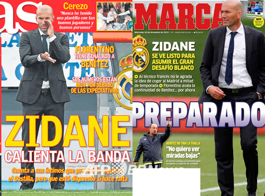 마르카와 아스 등 스페인 언론들은 16일(한국 시각) 일제히 "지단은 레알 마드리드의 감독이 될 준비를 마쳤다"라고 보도했다. 매체들에 따르면 지단은 시즌 도중 갑작스런 1군 부임을 원하지는 않지만, 구단 수뇌부가 원한다면 맡을 수 있다는 유보적인 입장이다.