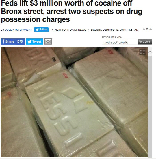 뉴욕포스트 등 미국 언론들에 따르면 뉴욕 경찰당국은 최근 뉴욕주 브롱크스 거리에서 푸에르토리코 출신의 마약사범 2명을 검거했다.