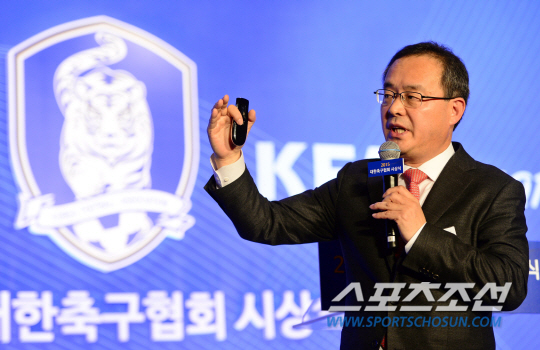 | 대한축구협회가 '2015년 KFA 시상식'을 23일 오전 서울 효창동 백범김구기념관에서 개최했다. 시상식에 앞서 이용수 대한축구협회 기술위원회 위원장이 유소년 및 여자축구 발전 정책 발표 시간을 갖고 있다. 김경민 기자 kyungmin@sportschosun.com |