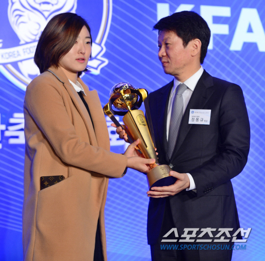 '올해의 여자선수'로 선정된 조소현은 "여자대표팀이 잘해서 받는다고 생각한다. 앞으로 열심히 하라는 상이라고 생각한다. 좀 더 기쁨을 드릴 수 있도록 열심히 하겠다"고 전했다.
