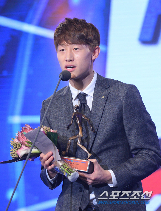 12월 1일 서울 그랜드힐튼호텔에서 'K리그 대상' 시상식이 열렸다. 이날 시상식에서는 프로축구연맹 후보선정위원회가 선정한 최우수감독상, 최우수선수상(MVP), 영플레이어상, 베스트 11 부문별 후보 중 최종 수상자가 결정된다. K리그 클래식 영플레이어상을 수상한 전북 이재성이 소감을 말하고 있다. 송정헌 기자 songs@sportschosun.com/2015.12.01