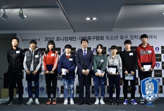 대한축구협회는 28일 서울 신문로 축구회관에서 '대한축구협회-포니정재단 장학금 수여식'을 개최했다. 장학금은 어려운 가정형편에도 불구하고 우수한 기량으로 축구 선수의 꿈을 키워가고 있는 강릉경포여중 이봄희 등 남녀 중학교 축구선수 60명에게 지급됐다. 장학금은 1인당 200만원이다. 지급대상자는 장학금 선정위원회(위원장 김호곤)가 16개 시도축구협회 및 연맹의 추천을 받은 선수들을 대상으로 결정했다.