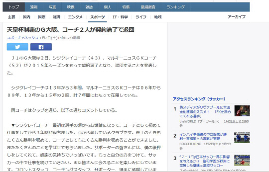 일본 언론들은 이들 두 코치가 팀을 떠나는 것에 대해 '계약만료' 외에 별다른 이유를 설명하지 못하고 있다. 하지만 감바 오사카가 일왕배 2연패를 달성하자마자 오랜 기간 몸담았던 코치들과의 결별을 발표한 것은 구단 내 어떤 문제가 있는 게 아니냐는 추측을 낳게 한다.