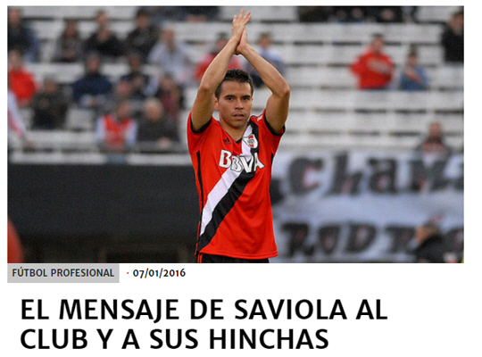 이후 사비올라는 벤피카와 말라가, 올림피아코스, 헬라스 베로나를 거쳐 지난해 여름 고향팀 리베르 플라테로 복귀했다. 리베르 플라테는 클럽 레전드인 사비올라를 2015 클럽월드컵에도 동행하는 등 예우를 갖췄다. 하지만 사비올라는 리그 13경기(선발 10, 경기당 평균 60.4분) 동안 단 1골도 넣지 못하는 부진을 보인 끝에 결국 고향팀마저 떠나게 됐다.