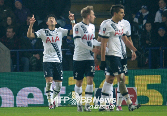 결국 전반 39분 손흥민의 골이 터졌다. 페널티 에어리어 오른쪽 코너에서 볼을 잡았다. 한 번 치고 들어간 손흥민은 그대로 오른발 중거리 슈팅을 날렸다. 상대 골키퍼도 어쩔 수가 없는 강력한 무회전 슈팅 골이었다.