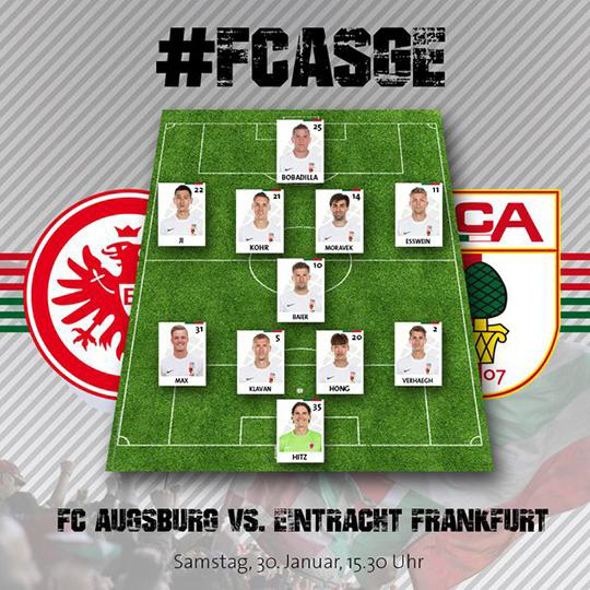 아우크스부르크는 30일 밤 11시 30분(한국시각) 독일 아우크스부르크 WWK아레나에서 독일 분데스리가 19라운드 프랑크푸르트와의 홈 경기를 치른다.