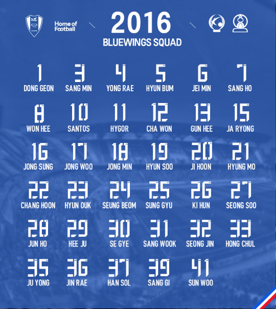 수원 삼성이 2016년 시즌 선수들의 등번호를 발표했다.